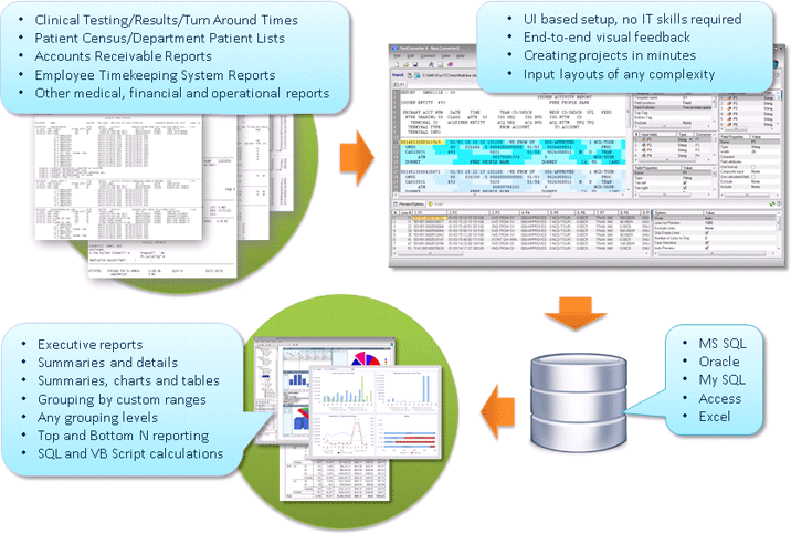 Analyzing data from a wide spectrum of diverse reports such as Registration, Clinical Patient Care, Coding/Financial, Patient Follow-up, Operations, etc.