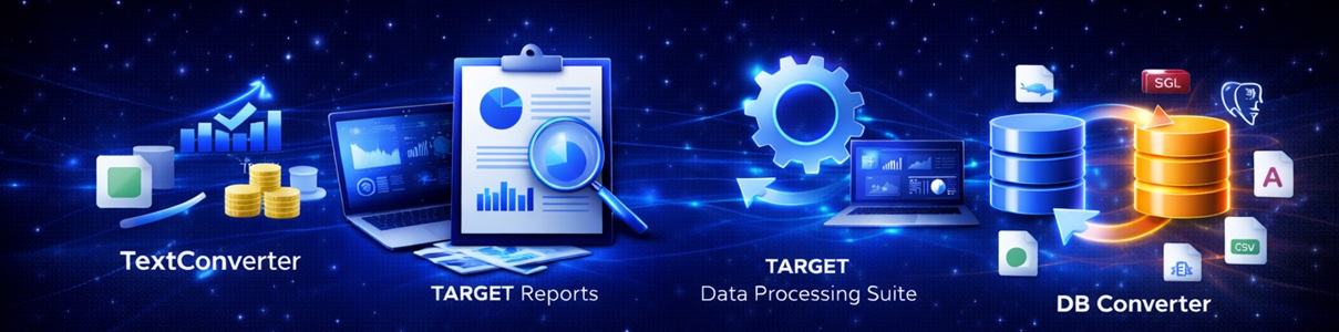 TextConverter Professional - includes all core extraction features and adds programming APIs, scheduling for automated execution, and advanced tools such as DBConverter, Scripter, TARGET Reports, and Free Form Layout Reports - all running on desktop and laptop environments. |